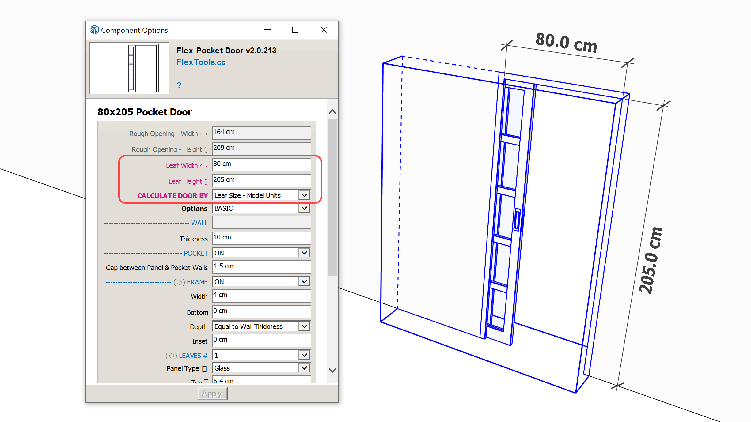 Every door can now be calculated by Leaf Size using your Model Units or WWHH. This is especially useful for matching schedules and manufacturer specs without back-calculating from rough openings.