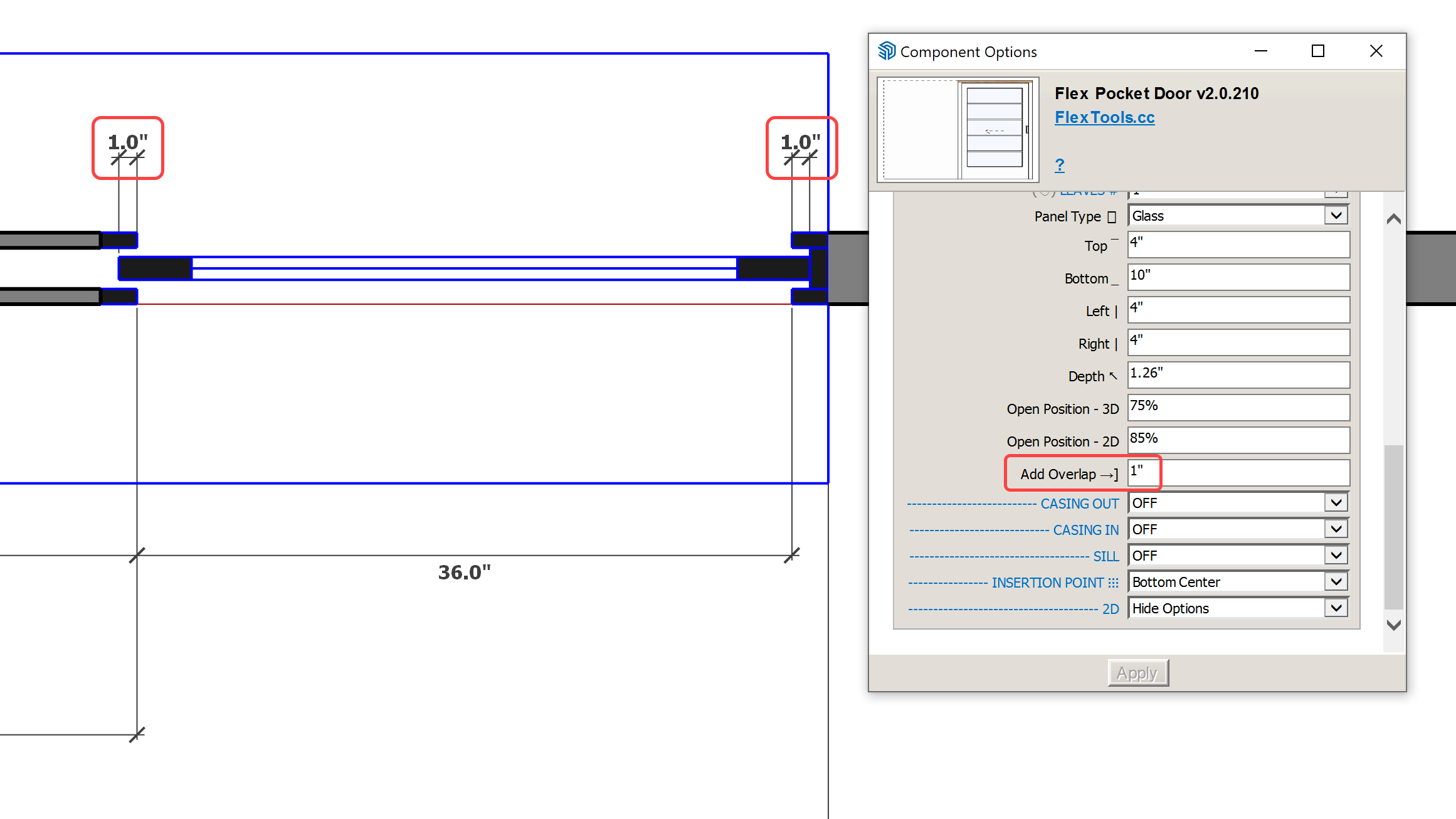 - New Overlap setting to show the leaf “biting” into the opening, extending slightly into the jamb and into the pocket.
